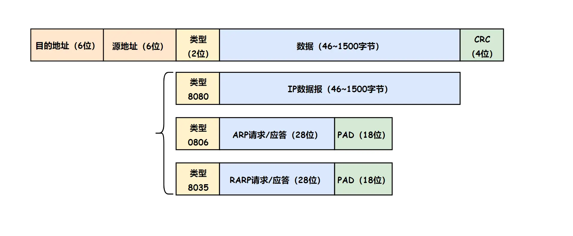 - 帧末尾是 CRC 校验码。